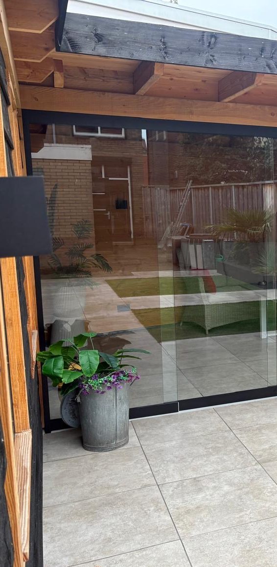 Heeft u al een overkapping? Wij plaatsen hoogwaardige glazen schuifwanden op maat. Zo verandert u uw bestaande overkapping in een beschutte en comfortabele ruimte, zonder het open gevoel te verliezen.