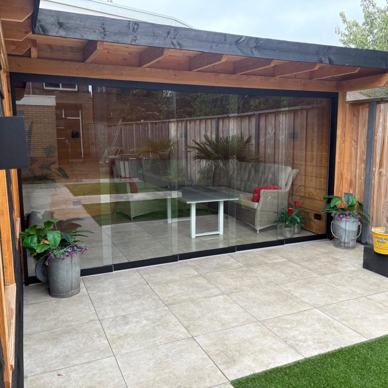 Heeft u al een overkapping? Wij plaatsen hoogwaardige glazen schuifwanden op maat. Zo verandert u uw bestaande overkapping in een beschutte en comfortabele ruimte, zonder het open gevoel te verliezen.
